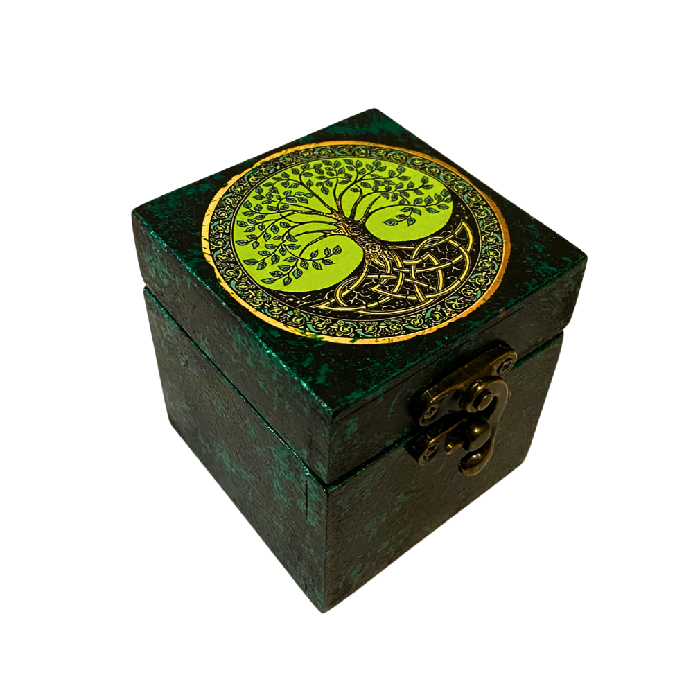 Uma peça que conecta céus e raízes, reunindo o simbolismo ancestral da Árvore da Vida em uma caixa artesanal revestida por espelhos internos. Representa equilíbrio, cura, força vital e crescimento espiritual, sendo ideal para quem busca renovação energética e profundidade nos caminhos mágicos.