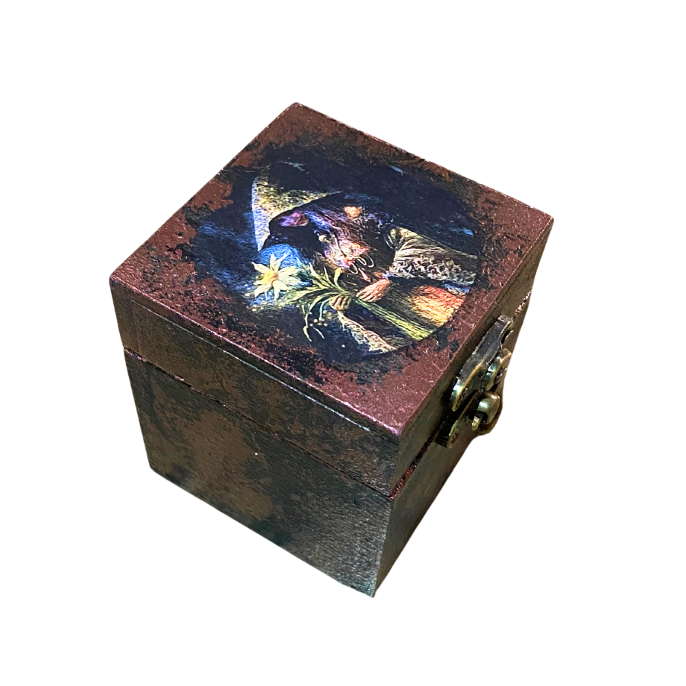 Os espelhos internos amplificam intenções, refletem bênçãos e ajudam a afastar energias intrusas, sendo utilizados em práticas de proteção, expansão da consciência e meditação. Perfeita para guardar pequenos talismãs, cristais, amuletos ou encantamentos pessoais.