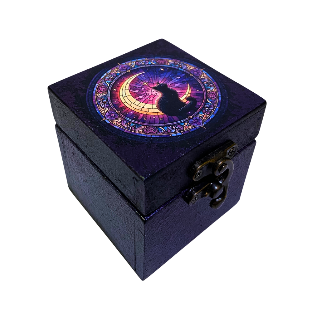 Uma caixa cheia de encanto lunar para guardar seus amuletos, jóias, cristais ou pequenos tesouros mágicos.