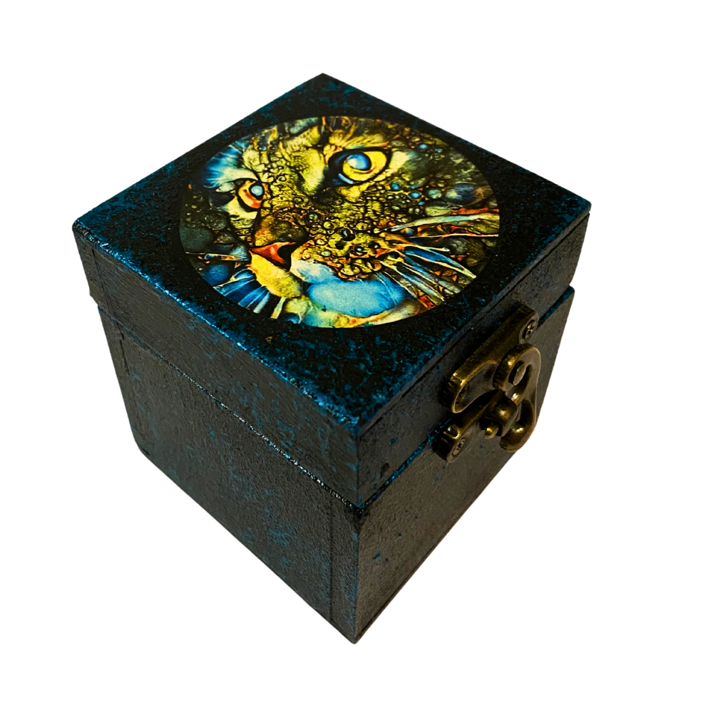 Caixa de espelhos com estampa de onça, perfeita para quem busca um acessório místico, vibrante e cheio de personalidade. A arte traz a força, a coragem e a visão aguçada da onça, símbolo de proteção espiritual e poder ancestral.