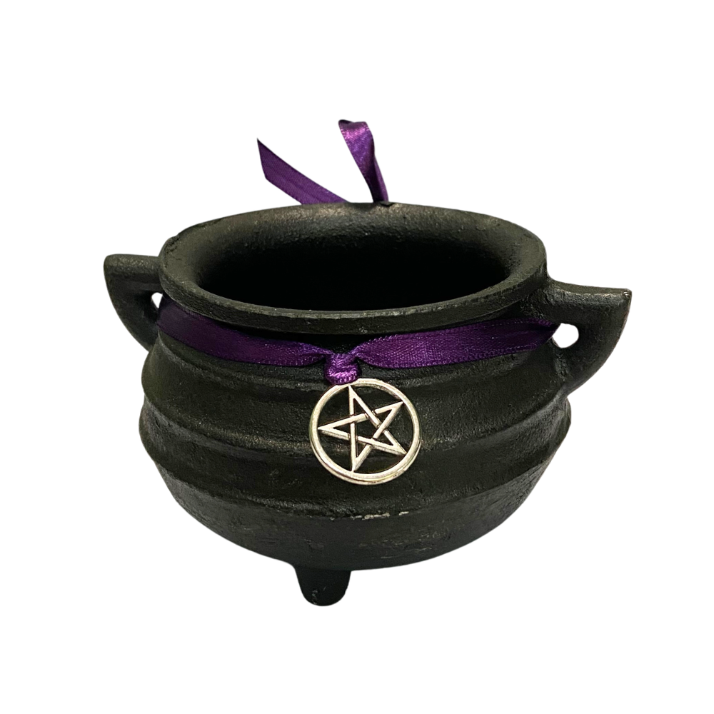 O caldeirão é um símbolo de transformação, criação e conexão com os elementos. Tradicionalmente associado à bruxaria e aos rituais mágicos, ele representa o ventre da Deusa, onde a vida é gerada e os mistérios da renovação e do renascimento ocorrem. O caldeirão também está ligado aos ciclos naturais, sendo visto como um instrumento de alquimia espiritual, no qual energias podem ser combinadas, transmutadas e liberadas. Usado para queimar ervas, preparar poções ou como foco de meditação, ele simboliza poder, fertilidade e a comunhão com as forças da natureza