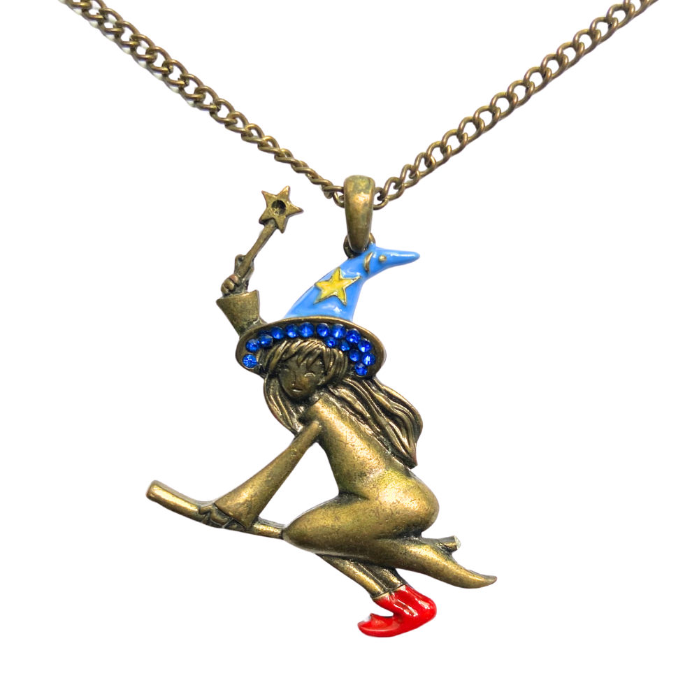 O Colar Bruxa Dorothy traz uma bruxinha cheia de charme e magia, voando em sua vassoura com chapéu azul estrelado e os icônicos sapatinhos vermelhos, iguais aos de Dorothy em O Mágico de Oz. É uma peça que une o lúdico ao místico, perfeita para quem deseja carregar consigo a energia da fantasia e da imaginação.