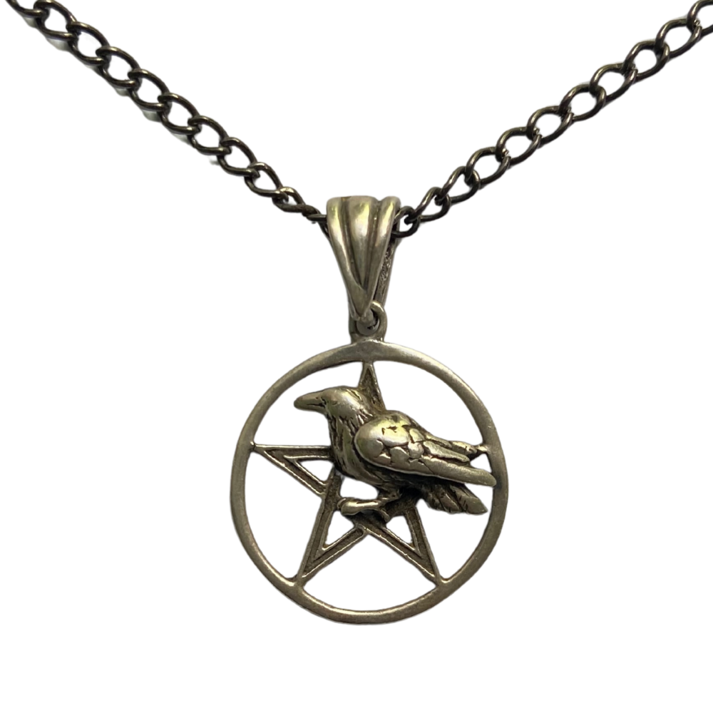 O Colar Corvo da Proteção Mágica une dois símbolos poderosos: o corvo, mensageiro entre os mundos e guardião dos segredos, e o pentagrama, emblema de proteção, equilíbrio e conexão com os elementos da natureza. Esta peça é mais do que um acessório, é um amuleto que inspira força espiritual, sabedoria e proteção contra energias negativas.