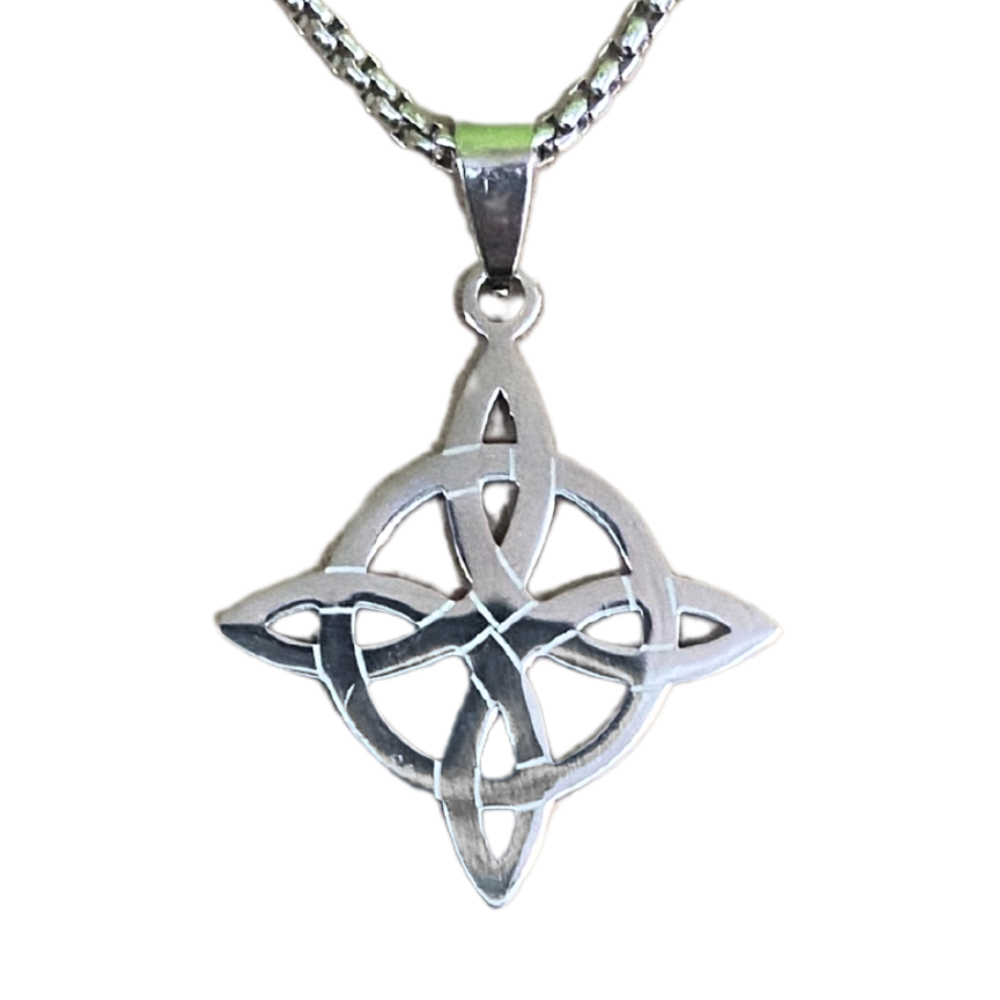 O Nó da Bruxa é um símbolo de proteção usado tradicionalmente por bruxas para afastar energias negativas e criar um escudo mágico ao redor de pessoas, objetos ou espaços. Composto por quatro laços entrelaçados formando uma mandala simétrica, ele também representa o ciclo da vida, os quatro elementos e os quatro cantos do mundo, sendo um emblema de poder, equilíbrio e continuidade