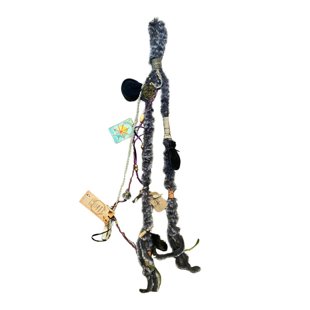 Peça exclusiva, feita à mão com materiais variados, como flores delicadas, ervas calmantes, penas e símbolos de equilíbrio
