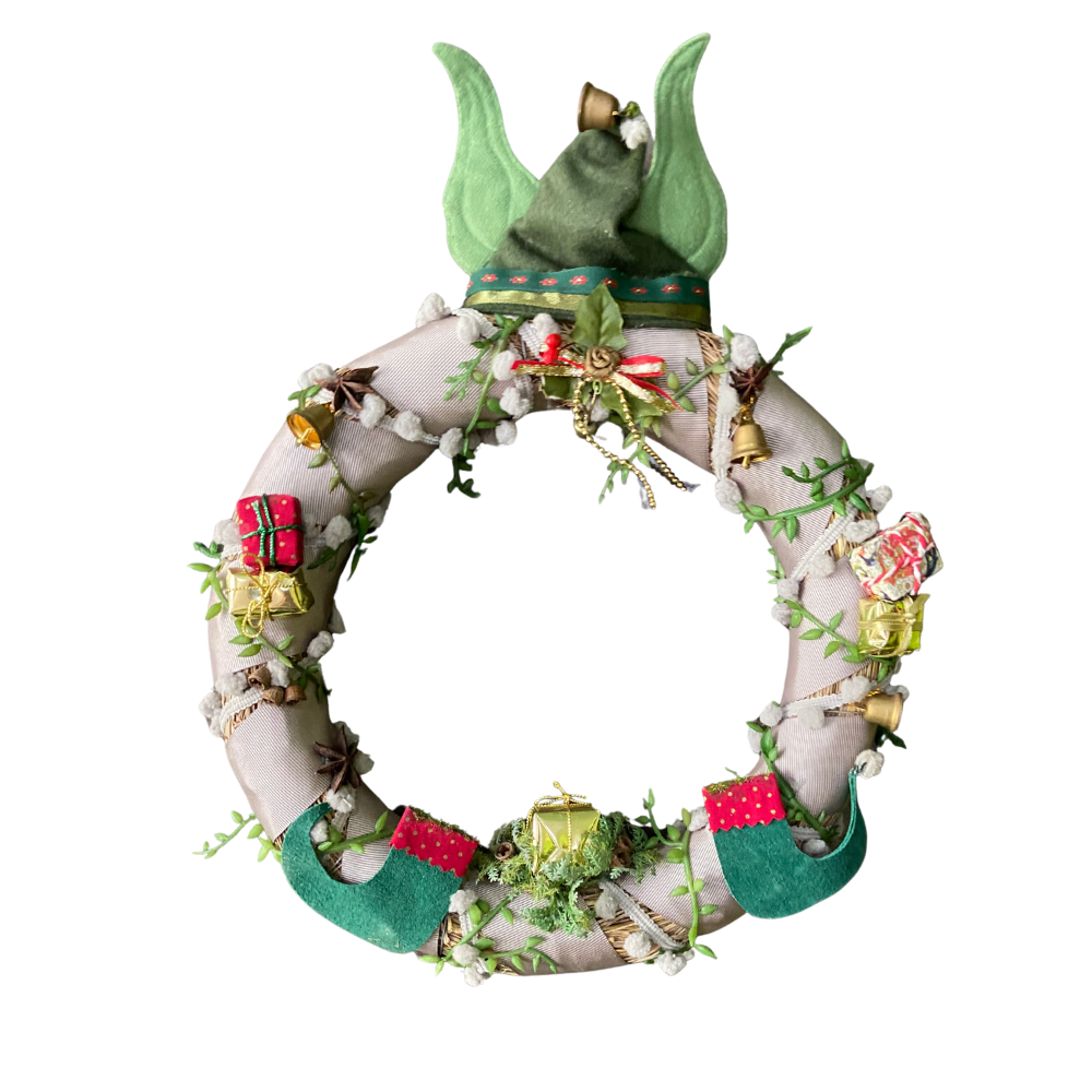 A Guirlanda dos Duendes é um amuleto festivo repleto de encanto e alegria, inspirada na magia das criaturas do bosque. Cada detalhe — dos sinos aos pequenos presentes — carrega a energia da prosperidade, da fartura e das boas risadas que os duendes trazem aos lares.