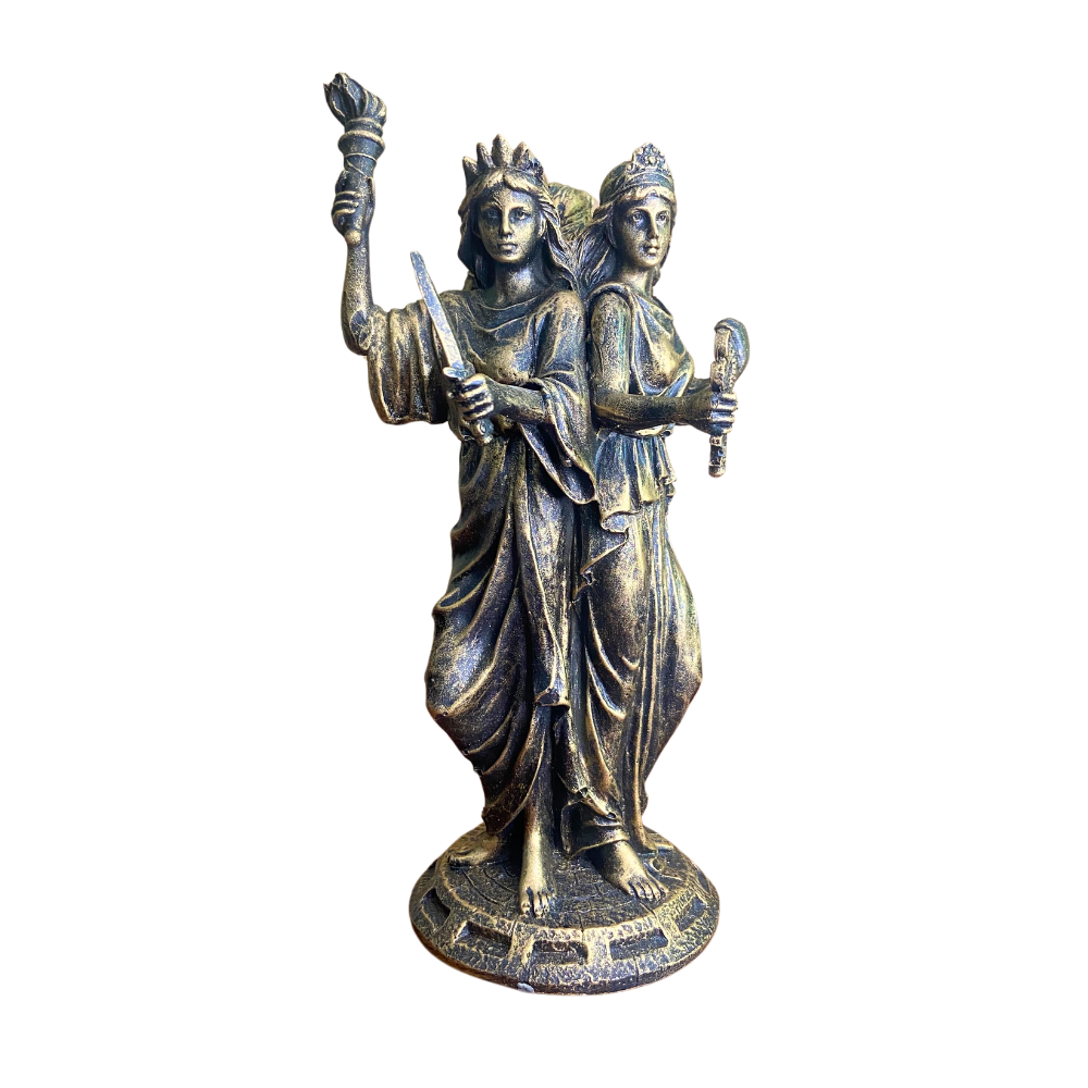 Hécate é uma deusa grega associada à magia, à bruxaria, às encruzilhadas e aos mistérios ocultos. Ela é frequentemente retratada como uma figura poderosa, com três faces, representando suas múltiplas facetas e sua habilidade de transcender o tempo e o espaço. Hécate é a guardiã dos limiares e dos portais, sendo capaz de conduzir almas entre os mundos físico e espiritual