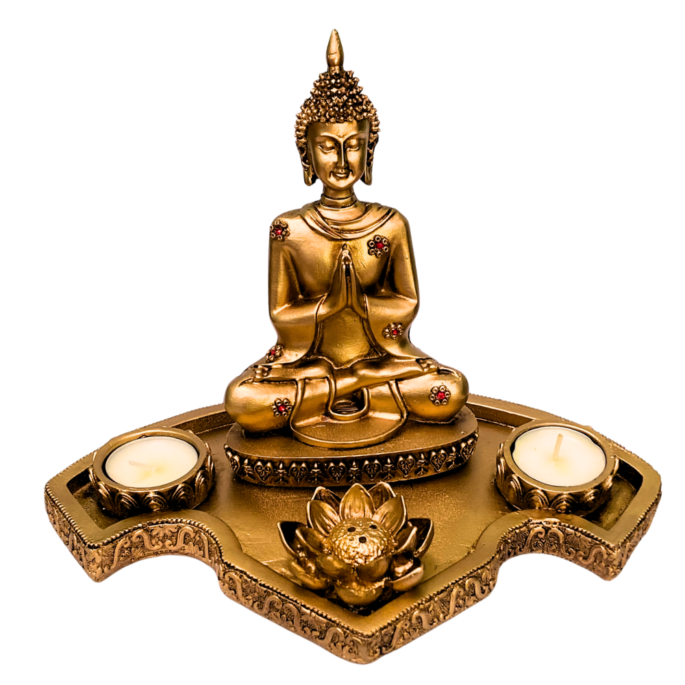 Altar de Buda é uma peça sagrada que une beleza, serenidade e espiritualidade. Geralmente esculpido com a imagem de Buda em posição de meditação, ele transmite paz e equilíbrio ao ambiente, tornando-se um ponto central de conexão espiritual.O incenso, ao ser aceso, simboliza a purificação do espaço e dos pensamentos. A fumaça que sobe suavemente representa as preces e intenções elevando-se ao universo, enquanto o aroma cria uma atmosfera propícia para meditação, reflexão e harmonização energética.