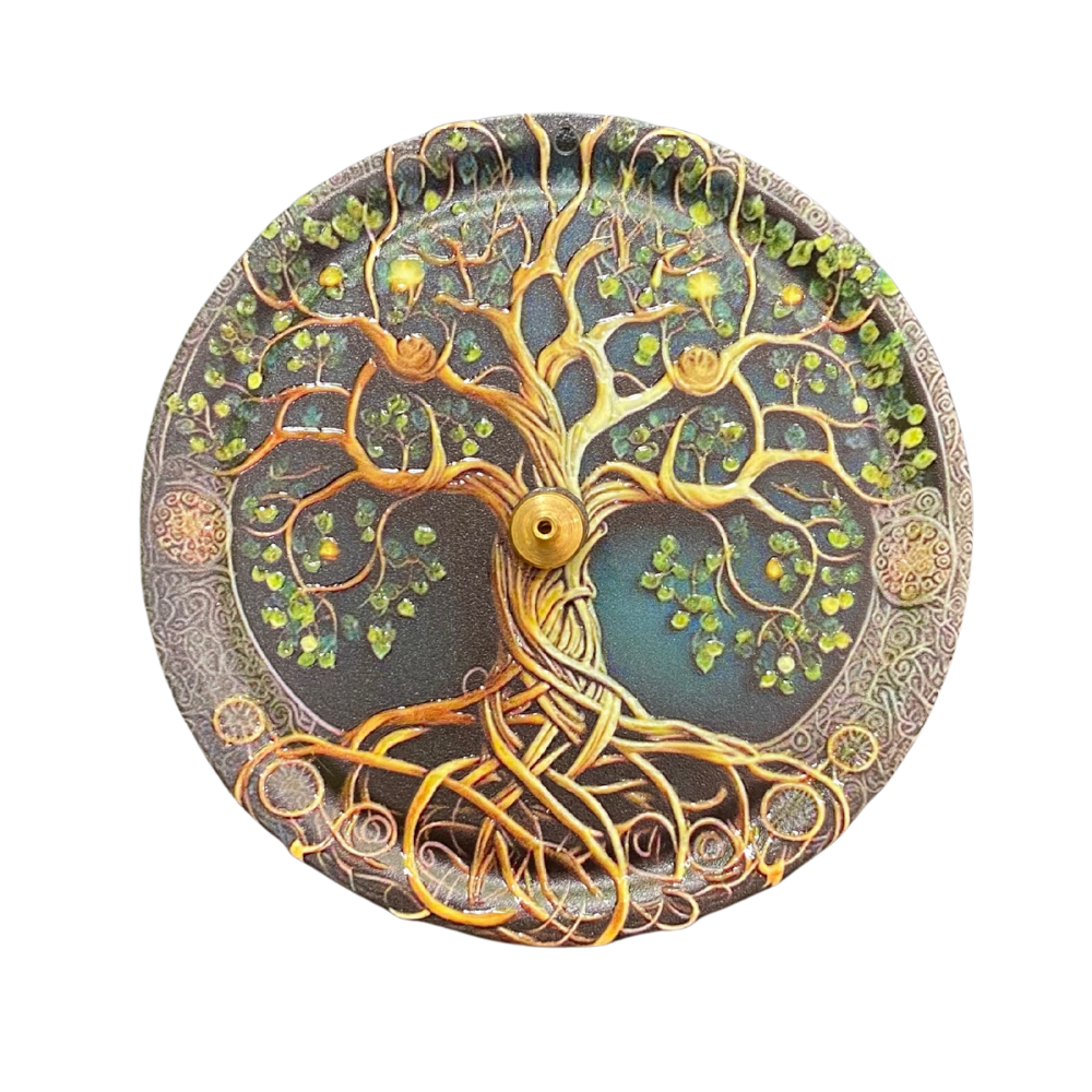 O Incensário Magnético Árvore da Vida simboliza conexão entre céu terra e espírito aliada à força do fluxo energético contínuo. A Árvore da Vida representa crescimento equilíbrio e interligação de todas as formas de existência enquanto o efeito magnético da fumaça expressa o movimento da energia vital em harmonia.