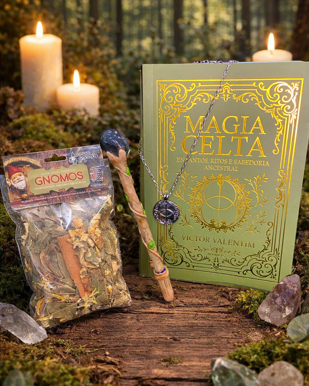 Um kit do livro de magia celta é um convite para mergulhar nos antigos mistérios e tradições dos povos celtas, conectando-se com a natureza, os ciclos da vida e a espiritualidade ancestral. Esse conjunto geralmente reúne um livro guia, que ensina rituais, símbolos e práticas mágicas, acompanhado de itens especiais que auxiliam na vivência dessas energias.