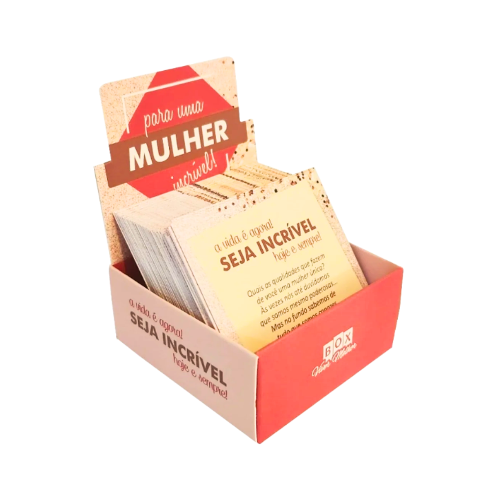 Caixinha contendo 100 cartões com frases inspiradoras e de auto-estima para presentear uma mulher especial e dizer o quanto ela é incrível!
