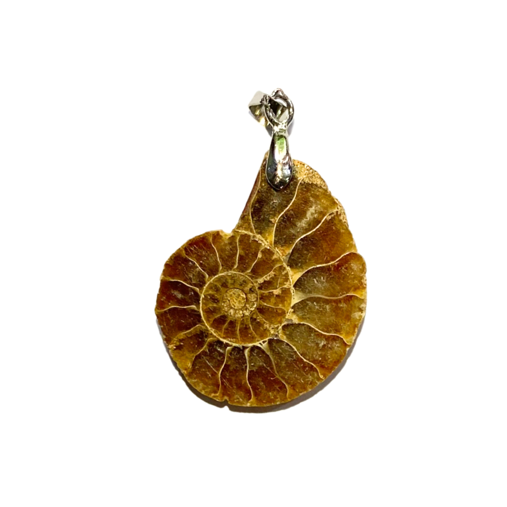 O pingente de fóssil de amonita é uma peça cheia de história, mistério e conexão com a energia da natureza. A Amonita foi um antigo molusco marinho que viveu há milhões de anos nos oceanos da Terra. Seu fóssil preserva a forma espiralada perfeita de sua concha, tornando-se um símbolo poderoso de transformação, evolução e ciclos da vida.