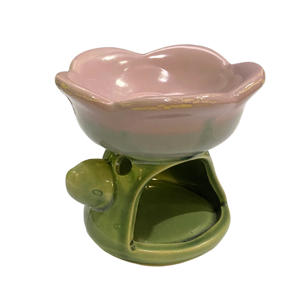 Delicado e encantador, o rechaud Flor das Fadas traz um toque de magia e serenidade para o ambiente. Feito em cerâmica esmaltada nas cores verde e rosa, possui formato de flor sobre uma pequena base, ideal para derreter essências ou aromatizar espaços com óleos e ceras perfumadas.