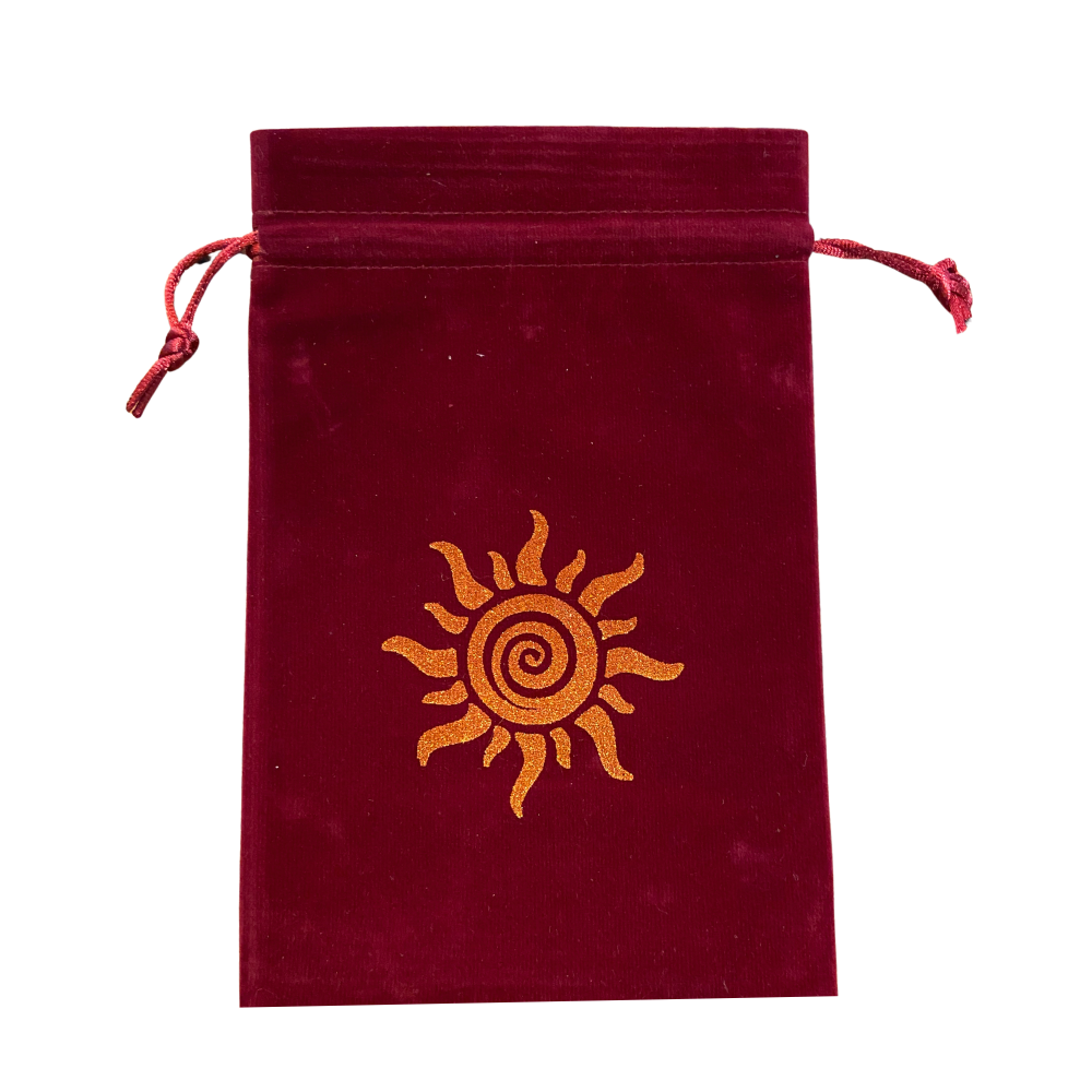 Inspirado na energia solar, esse saquinho de veludo carrega vibrações de luz, vitalidade e clareza. Ideal para guardar oráculos, cristais ou amuletos que trabalhem com força, expansão e brilho interior. Um acessório que protege seus itens mágicos enquanto irradia calor, alegria e poder pessoal