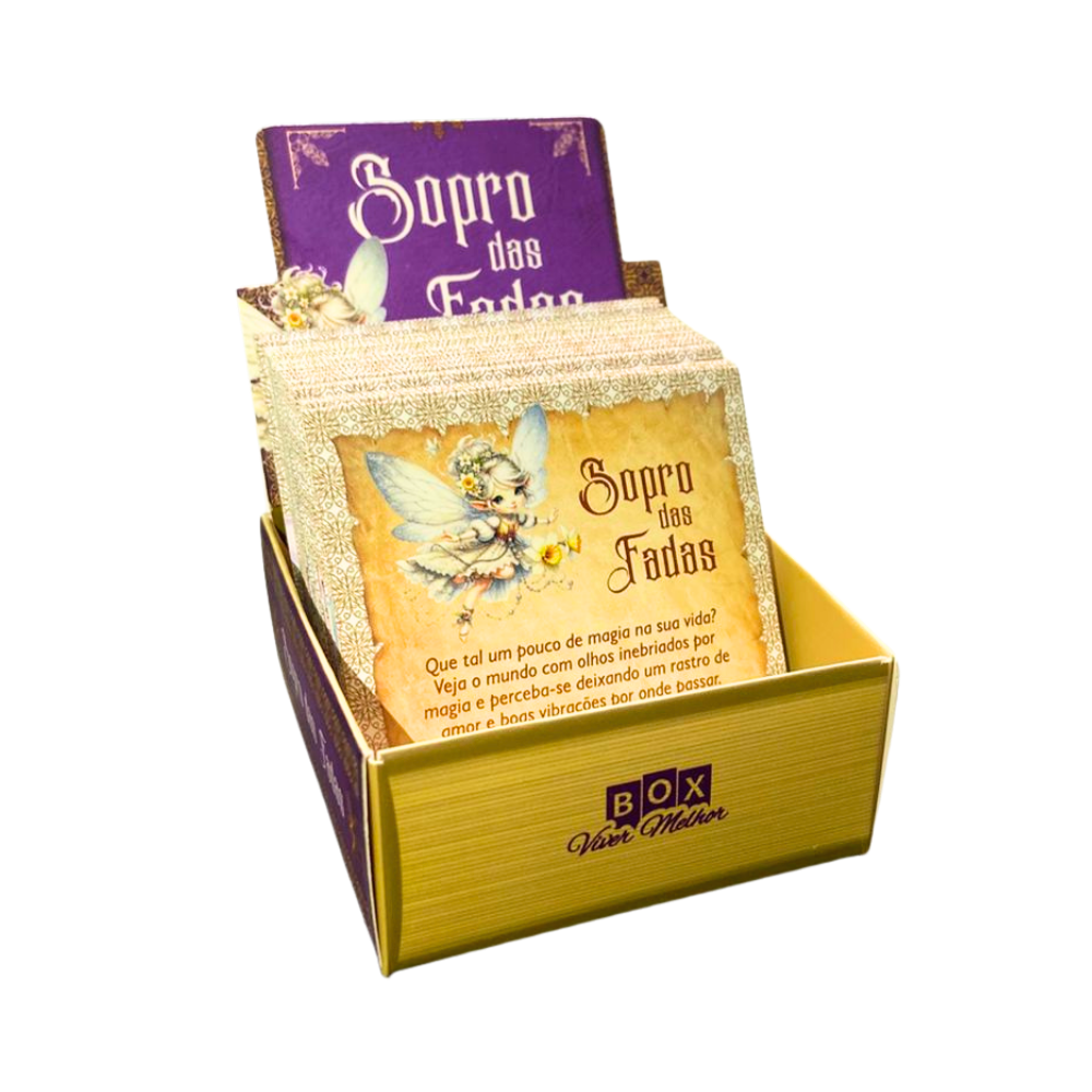 Uma caixinha mágica com 100 cartões, cada um trazendo previsões das fadas encantadas para iluminar o seu momento.