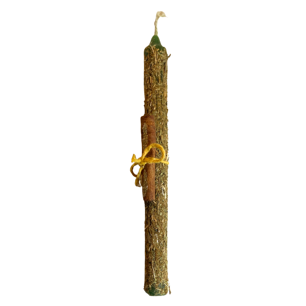 Esta vela foi vestida com alecrim e pau de canela, duas potentes aliadas da saúde física, mental e espiritual. O alecrim, erva solar por excelência, purifica, revigora e traz clareza, sendo tradicionalmente usado para afastar doenças e renovar as forças vitais. Já a canela aquece, ativa a energia interna e acelera processos de recuperação, trazendo proteção e vigor